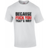 Because fuck you thats why - funny insult t-shirtQuick Details:- Printed in the USA